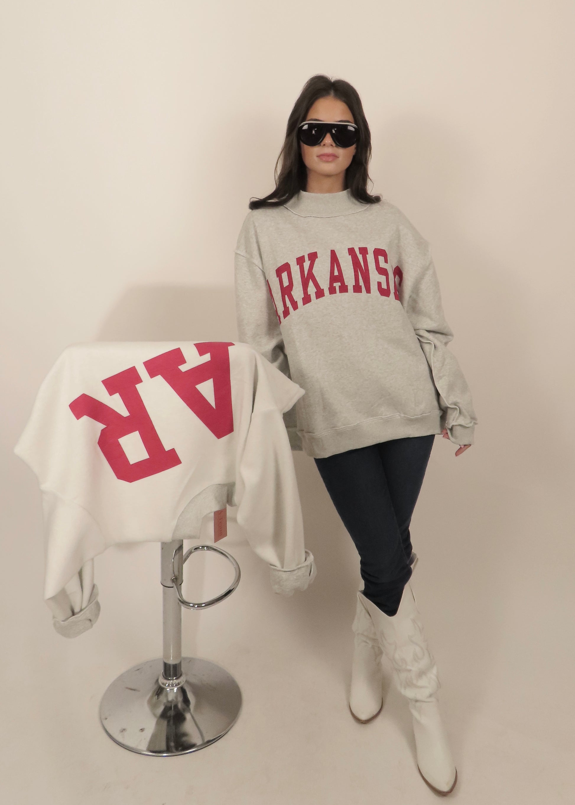 Arkansas Mock Neck Sweatshirt – reversible, soft, and made for Fayetteville style.