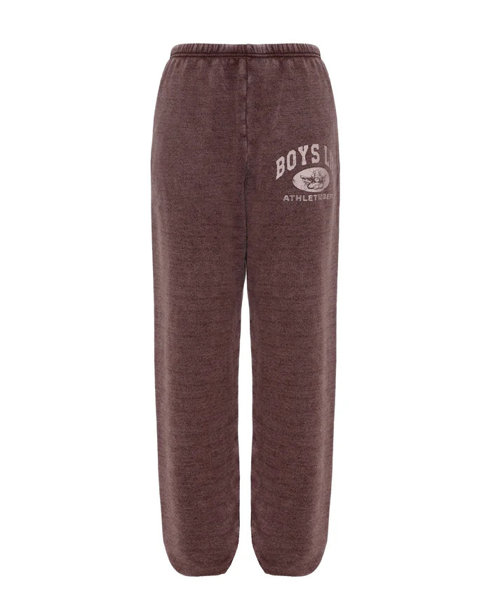 Mocha sweatpants with vintage-inspired Boys Lie Athletic Dept. logo at front