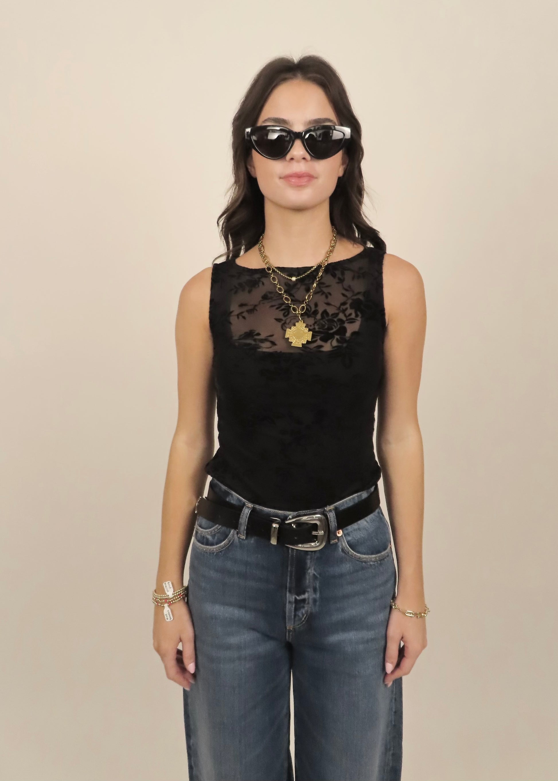 Black Sheer Floral Bodysuit – delicate, textured, and statement-making.