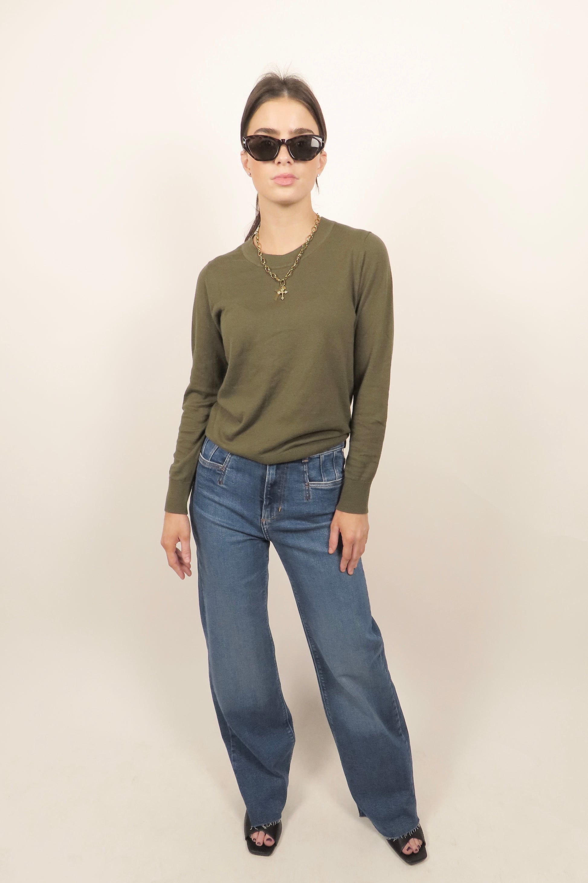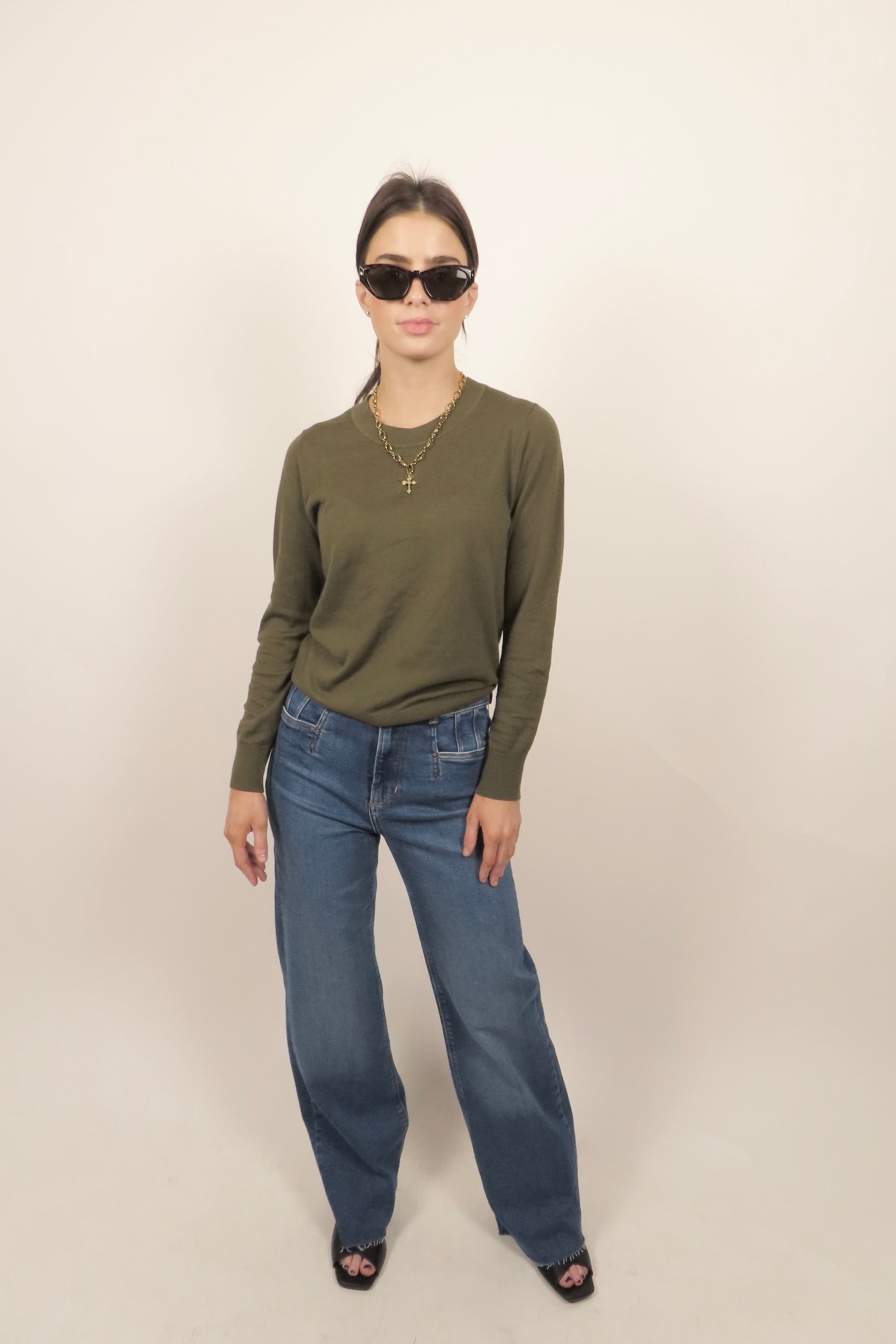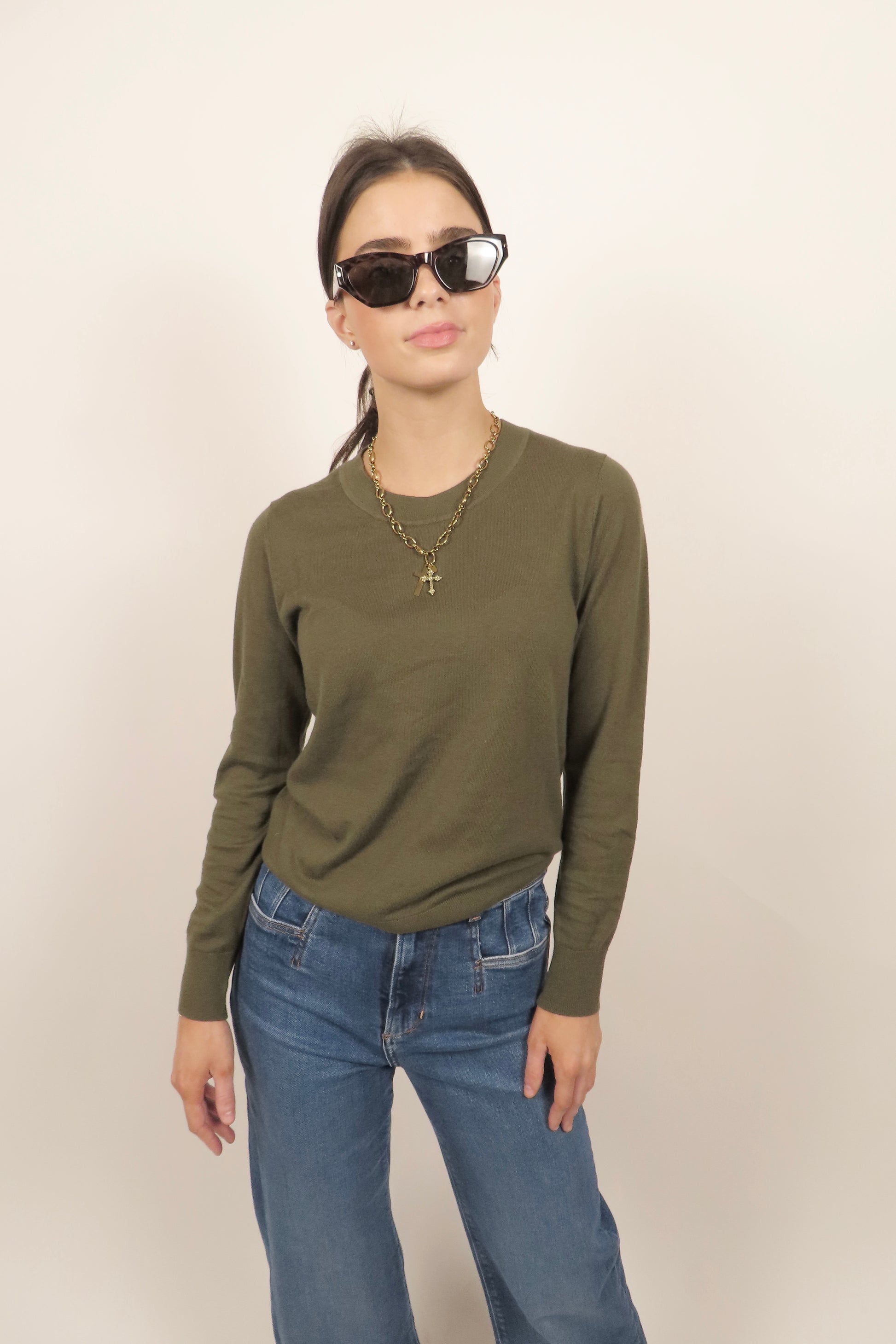 The Standard - Green cotton cashmere crew sweater.